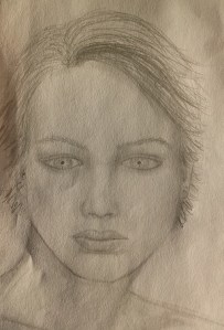 It is far better than the other drawing, as you can see, however even before I started her ridiculous hair (which I drew several ways before quitting, though the evidence didn’t come out in the picture), I had already figured out it wasn’t really that I couldn’t draw Ash, or even that some small thing about the model needed to be altered and if I could just find whatever it was and fix it, she would be the perfect Ash. The trouble was that the girl I was drawing repeatedly and requiring still more brief art lessons/therapy sessions with my fourteen year old for, was just not Ash, not at all, and I was too stubborn to recognize it. I don’t know who model 1 was, but she wasn’t who I thought she was.